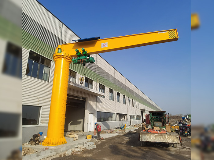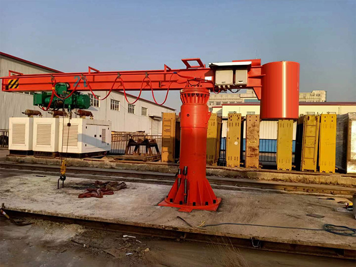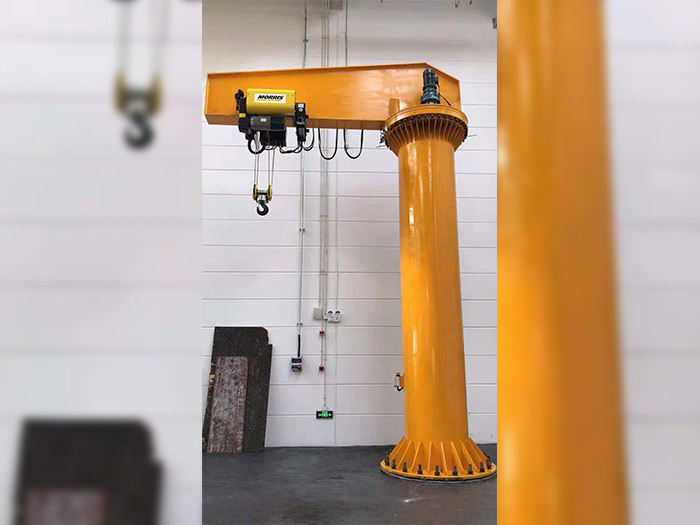 重型旋臂起重 機(jī)是近年發(fā)展起來 的中小型吊運(yùn)設(shè)備 ,其結(jié)構(gòu)獨(dú)特,安 全可靠,具有節(jié)能、省時(shí)、省 力靈活的特點(diǎn)。與 電動(dòng)葫蘆或手拉葫 蘆配套使用,能在三維空間內(nèi)隨意操作,特別是在短距、密集性吊運(yùn)的場(chǎng)合更能顯示出比常規(guī)吊運(yùn)設(shè)備獨(dú)有的優(yōu)越性。